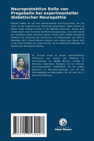 Oftmals stoßen wir auf sehr beeindruckende Forschungsartikel, die sich mehr auf die Ergebnisse der Forschung konzentrieren. Dabei können wir jedoch einige wichtige Schritte in der Methodik übersehen. Dieses Buch enthält jedoch einen Schritt-für-Schritt-Forschungsprozess, durch den Sie die hier enthaltene Arbeit verstehen werden. Dieses Buch enthält chirurgische Verfahren zur Isolierung des Ischiasnervs am Rattenmodell und wird für diejenigen, die in diesem Bereich arbeiten, sehr nützlich sein. Dieses Buch ist der beste Leitfaden für junge Forscher, die an präklinischen Modellen der diabetischen Neuropathie arbeiten.