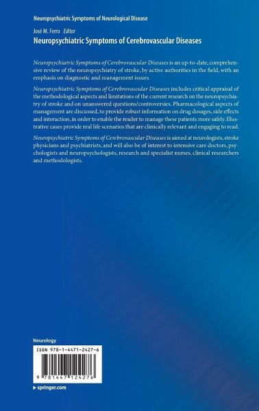 Neuropsychiatric Symptoms of Cerebrovascular Diseases includes critical appraisal of the methodological aspects and limitations of the current research on the neuropsychiatry of stroke and on unanswered questions/controversies. Pharmacological aspects of management are discussed, to provide robust information on drug dosages, side effects and interaction, in order to enable the reader to manage these patients more safely. Illustrative cases provide real life scenarios that are clinically relevant and engaging to read.