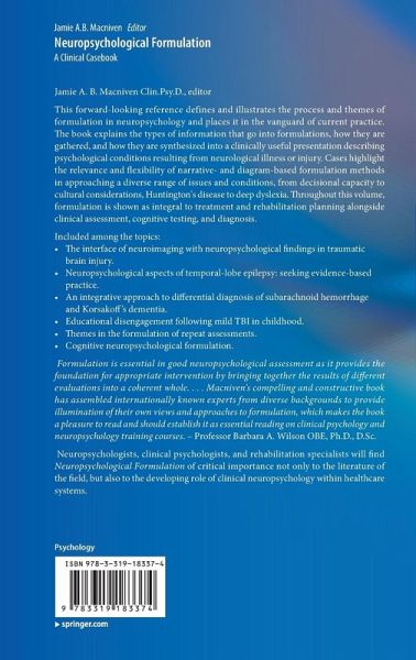 ng together the results of different evaluations into a coherent whole. . . . Macniven's compelling and constructive book has assembled internationally known experts from diverse backgrounds to provide illumination of their own views and approaches to formulation, which makes the book a pleasure to read and should establish it as essential reading on clinical psychology and neuropsychology training courses. - Professor Barbara A. Wilson OBE, Ph.D.,