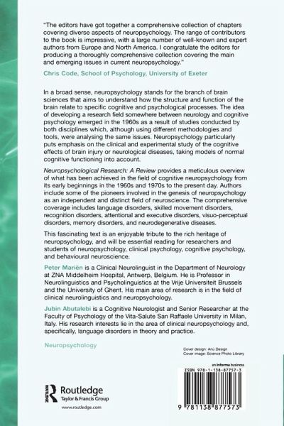 In a broad sense, neuropsychology stands for the branch of brain sciences that aims to understand how the structure and function of the brain relate to specific cognitive and psychological processes. The idea of developing a research field somewhere between neurology and cognitive psychology emerged in the 1960s as a result of studies conducted by both disciplines which, although using different methodologies and tools, were analysing the same issues. Neuropsychology particularly puts emphasis on the clinical and experimental study of the cognitive effects of brain injury or neurological diseases, taking models of normal cognitive functioning into account. Neuropsychological Research: A Review provides a meticulous overview of what has been achieved in the field of cognitive neuropsychology from its early beginnings in the 1960s and 1970s to the present day. Authors include some of the pioneers involved in the genesis of neuropsychology as an independent and distinct field of neuroscience. The comprehensive coverage includes language disorders, skilled movement disorders, recognition disorders, attentional and executive disorders, visuo-perceptual disorders, memory disorders, and neurodegenerative diseases. This fascinating text forms an enjoyable tribute to the rich heritage of neuropsychology, and will be essential reading for researchers and students of neuropsychology, clinical psychology, cognitive psychology, and behavioural neuroscience.