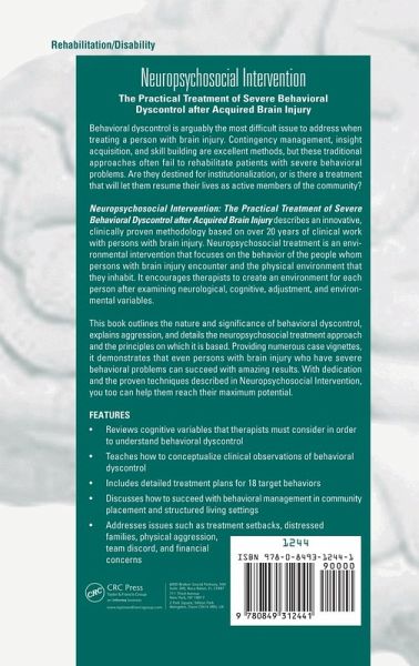 Neuropsychosocial intervention is an innovative and clinically proven treatment approach to severe behavioral problems that can affect persons with acquired brain injury. This book outlines the nature and significance of behavioral dyscontrol, explains aggression, and details the neuropsychosocial treatment approach and the principles on which it is based. It includes detailed behavioral treatment plans for 18 target behaviors and includes a review of medication management. The book also presents a discussion of community placement and living situations that facilitate success for the person with brain injury. With numerous case vignettes, it shows how this novel alternative to traditional treatment approaches may help keep survivors out of institutions and jails.