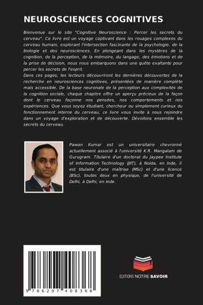 Bienvenue sur le site "Cognitive Neuroscience : Percer les secrets du cerveau". Ce livre est un voyage captivant dans les rouages complexes du cerveau humain, explorant l'intersection fascinante de la psychologie, de la biologie et des neurosciences. En plongeant dans les mystères de la cognition, de la perception, de la mémoire, du langage, des émotions et de la prise de décision, nous nous embarquons dans une quête exaltante pour percer les secrets de l'esprit.Dans ces pages, les lecteurs découvriront les dernières découvertes de la recherche en neurosciences cognitives, présentées de manière complète mais accessible. De la base neuronale de la perception aux complexités de la cognition sociale, chaque chapitre offre un aperçu précieux de la façon dont le cerveau façonne nos pensées, nos comportements et nos expériences. Que vous soyez étudiant, chercheur ou simplement curieux du fonctionnement interne du cerveau, ce livre vous invite à nous rejoindre dans un voyage d'exploration et de découverte. Dévoilons ensemble les secrets du cerveau.