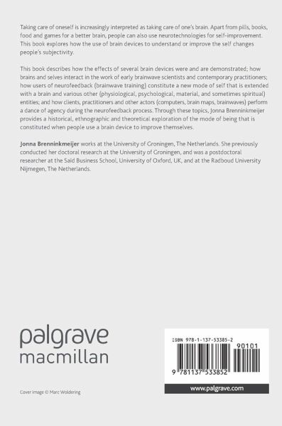 This book describes how the effects of several brain devices were and are demonstrated; how brains and selves interact in the work of early brainwave scientists and contemporary practitioners; how users of neurofeedback (brainwave training) constitute a new mode of self that is extended with a brain and various other (physiological, psychological, material, and sometimes spiritual) entities, and; how clients, practitioners and other actors (computers, brain maps, brainwaves) perform a dance of agency during the neurofeedback process. Through these topics, Jonna Brenninkmeijer provides a historical, ethnographical, and theoretical exploration ofthe mode of being that is constituted when people use a brain device to improve themselves.