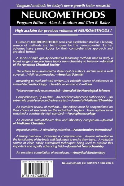 The field of neurotrophic factors has witnessed exp- sive growth in the past decade. As is usual in scientific in- vation, this progress has been closely associated with methodological advances. The introduction of molecular b- logical techniques into the neurotrophic factor field led to the discovery of new families of neurotrophic growth f- tors and their receptors. Production of growth factors by recombinant technology played a crucial part. The example of nerve growth factor, the paradigmatic neurotrophic factor, illustrates this point. A decade ago investigators were forced to purify small quantities of this protein from murine salivary glands, but much larger qu- tities of recombinant nerve growth factor are now available for experimentation as well as clinical development. A decade ago there was a controversy about the existence of nerve growth factor in the brain and the immunoassays used for its measurement, but current publications report the precise localization of gene expression for nerve growth factor and its receptor in the brain. Neurotrophic Factors aims at presenting the techniques that have been crucial to the realization of these rapid advances and thus have helped propel the neurotrophic factors field to its current status of high visibility. These techniques range from molecular biological methods used for cloning and production, to cell culture methods for assessing biological activities, to animal models of nervous system injury (nec- sary for the development of therapeutic agents from neurotrophic factors).