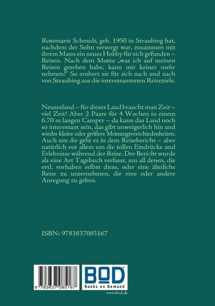 Neuseeland - für dieses Land braucht man Zeit - viel Zeit! Aber 2 Paare für 4 Wochen in einem 6.70 m langen Camper - da kann das Land noch so interessant sein, das gibt unweigerlich hin und wieder kleine oder größere Meinungsverschiedenheiten. Auch um die geht es - zum Teil humorvoll, zum Teil doch schon etwas genervt in dem Reisebericht. Aber natürlich sind es vor allem die tollen Eindrücke und Erlebnisse während der Reise die hier geschildert werden. Der Bericht wurde als eine Art Tagebuch verfasst, um all denen, die evtl. vorhaben selbst diese, oder eine ähnliche Reise zu unternehmen, die eine oder andere Anregung zu geben.