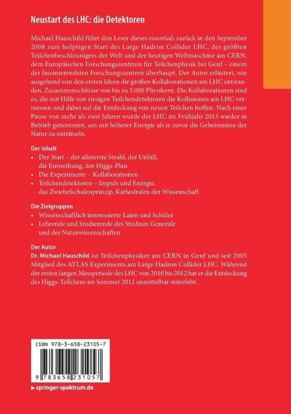 Michael Hauschild führt den Leser dieses essentials zurück in den September 2008 zum holprigen Start des Large Hadron Collider LHC, des größten Teilchenbeschleunigers der Welt und der heutigen Weltmaschine am CERN, dem Europäischen Forschungszentrum für Teilchenphysik bei Genf - einem der faszinierendsten Forschungszentren überhaupt. Der Autor erläutert, wie ausgehend von den ersten Ideen die großen Kollaborationen am LHC entstanden, Zusammenschlüsse von bis zu 3.000 Physikern. Die Kollaborationen sind es, die mit Hilfe von riesigen Teilchendetektoren die Kollisionen am LHC vermessen und dabei auf die Entdeckung von neuen Teilchen hoffen. Nach einer Pause von mehr als zwei Jahren wurde der LHC im Frühjahr 2015 wieder in Betrieb genommen, um mit höherer Energie als je zuvor die Geheimnisse der Natur zu enträtseln.
