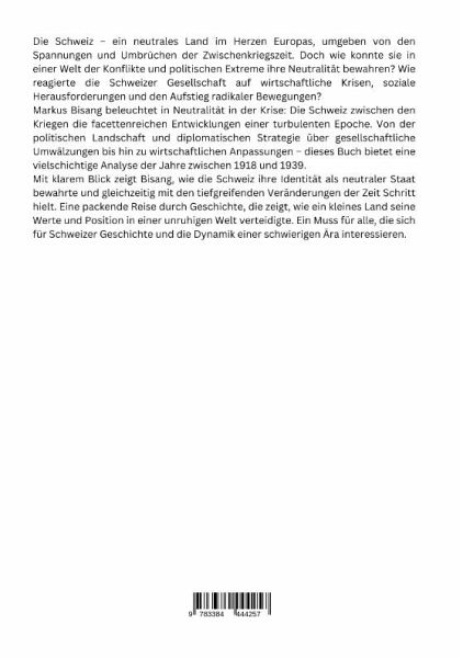 Die Schweiz - ein neutrales Land im Herzen Europas, umgeben von den Spannungen und Umbrüchen der Zwischenkriegszeit. Doch wie konnte sie in einer Welt der Konflikte und politischen Extreme ihre Neutralität bewahren? Wie reagierte die Schweizer Gesellschaft auf wirtschaftliche Krisen, soziale Herausforderungen und den Aufstieg radikaler Bewegungen?Markus Bisang beleuchtet in Neutralität in der Krise: Die Schweiz zwischen den Kriegen die facettenreichen Entwicklungen einer turbulenten Epoche. Von der politischen Landschaft und diplomatischen Strategie über gesellschaftliche Umwälzungen bis hin zu wirtschaftlichen Anpassungen - dieses Buch bietet eine vielschichtige Analyse der Jahre zwischen 1918 und 1939.Mit klarem Blick zeigt Bisang, wie die Schweiz ihre Identität als neutraler Staat bewahrte und gleichzeitig mit den tiefgreifenden Veränderungen der Zeit Schritt hielt. Eine packende Reise durch Geschichte, die zeigt, wie ein kleines Land seine Werte und Position in einer unruhigen Welt verteidigte. Ein Muss für alle, die sich für Schweizer Geschichte und die Dynamik einer schwierigen Ära interessieren.
