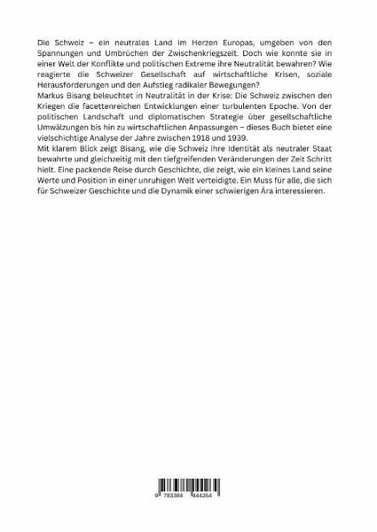 Die Schweiz - ein neutrales Land im Herzen Europas, umgeben von den Spannungen und Umbrüchen der Zwischenkriegszeit. Doch wie konnte sie in einer Welt der Konflikte und politischen Extreme ihre Neutralität bewahren? Wie reagierte die Schweizer Gesellschaft auf wirtschaftliche Krisen, soziale Herausforderungen und den Aufstieg radikaler Bewegungen?Markus Bisang beleuchtet in Neutralität in der Krise: Die Schweiz zwischen den Kriegen die facettenreichen Entwicklungen einer turbulenten Epoche. Von der politischen Landschaft und diplomatischen Strategie über gesellschaftliche Umwälzungen bis hin zu wirtschaftlichen Anpassungen - dieses Buch bietet eine vielschichtige Analyse der Jahre zwischen 1918 und 1939.Mit klarem Blick zeigt Bisang, wie die Schweiz ihre Identität als neutraler Staat bewahrte und gleichzeitig mit den tiefgreifenden Veränderungen der Zeit Schritt hielt. Eine packende Reise durch Geschichte, die zeigt, wie ein kleines Land seine Werte und Position in einer unruhigen Welt verteidigte. Ein Muss für alle, die sich für Schweizer Geschichte und die Dynamik einer schwierigen Ära interessieren.
