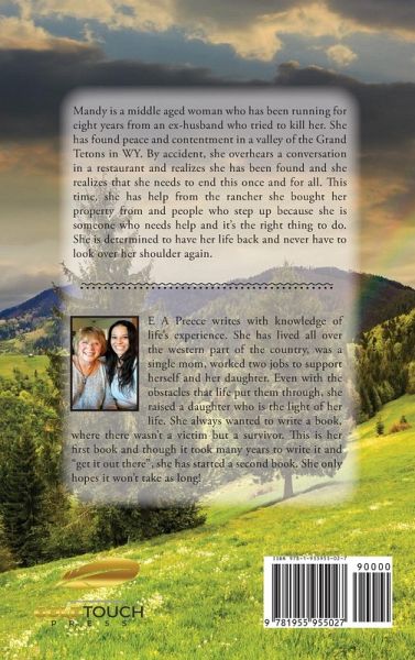 Mandy is a middle aged woman who has been running for eight years from an ex-husband who tried to kill her. She has found peace and contentment in a valley of the Grand Tetons in WY. By accident, she overhears a conversation in a restaurant and realizes she has been found and she realizes that she needs to end this once and for all. This time, she has help from the rancher she bought her property from and people who step up because she is someone who needs help and it's the right thing to do. She is determined to have her life back and never have to look over her shoulder again.