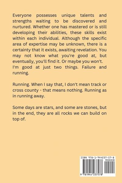 Everyone possesses unique talents and strengths waiting to be discovered and nurtured. Whether one has mastered or is still developing their abilities, these skills exist within each individual. Although the specific area of expertise may be unknown, there is a certainty that it exists, awaiting revelation. You may not know what you're good at, but eventually, you'll find it. Or maybe you won't. I'm good at just two things. Failure and running. As I see it, failure isn't the end, nor the time to give up. Instead, it's the opportunity to begin again; the time to be smarter. Failure, far from defeat, is a catalyst for growth. By eliminating what doesn't work, we inch closer to success. Embrace failure, push further, and discover what truly works. Running. When I say that, I don't mean track or cross county - that means nothing. Running as in running away. "Even when you have gone as far as you can, and everything hurts, and you are staring at the spectre of self-doubt, you can find a bit more strength if you look closely enough." It's not what I chose to be good at, but I guess being on the run my whole life was destined to be what I did best. Some days are stars, and some are stones, but in the end, they are all rocks we can build on top of.