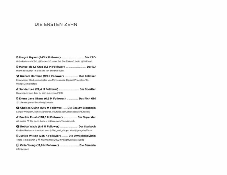 Was sie nicht wissen: Sie wurden nicht wegen ihrer Followerzahlen auf die Insel eingeladen. Jede:r von ihnen hütet ein tödliches Geheimnis, und es scheint, als hätte jemand entschieden, dass die Zeit der Rache gekommen ist. Unknown Island ist kein Urlaub, es ist eine Falle. Und es sieht alles danach aus, als würden diese zehn trotz all ihres Einflusses nie wieder nach Hause zurückkehren ...