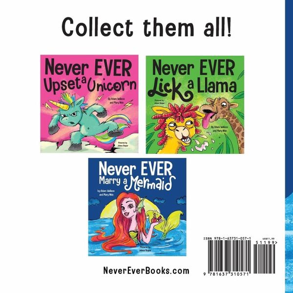 Mermaids are amazing and pretty and nice, but you should never, EVER marry one! It's one disaster after another. Don't believe me? Well, here read on: Never, ever marry a mermaid, That would not go well. There's something fishy about a mermaid, That isn't just the smell! Come and join the fun in the brand new series, Never Ever, by the New York Times bestselling author of the How to Catch Series, Adam Wallace, and Ninja Life Hacks creator, Mary Nhin. Also in the Never Ever Series: Never Ever Marry a Mermaid Never Ever Upset a Unicorn Never Ever Lick a Llama Never Ever Massage a Moose Never Ever Cuddle a Crocodile