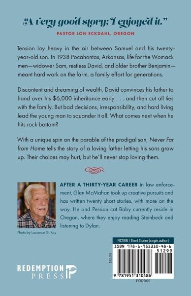 Tension lay heavy in the air between Samuel and his twenty-year-old son. In 1938 Pocahontas, Arkansas, life for the Womack men-widower Sam, restless David, and older brother Benjamin-meant hard work on the farm, a family effort for generations. Discontent and dreaming of wealth, David convinces his father to hand over his $6,000 inheritance early . . . and then cut all ties with the family. But bad decisions, irresponsibility, and hard living lead the young man to squander it all. What comes next when he hits rock bottom? With a unique spin on the parable of the prodigal son, Never Far from Home tells the story of a loving father letting his sons grow up. Their choices may hurt, but he'll never stop loving them.