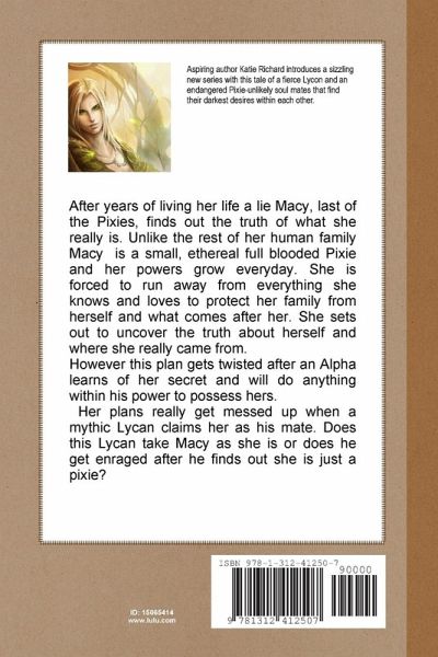 After living her life a lie Macy, an endangered pixie, finds out what she really is. Unlike her human family Macy is a powerful creature who has no idea what she can do. She is forced to run away to save her family from herself and what follows her. Two strangers run away with her and vow to help her. Her fate gets a twisted turn when a mythical Lycan claims her as his mate. Does the Lycan take Macy for how she is or does he become enraged after learning his mate is just a ethereal pixie? Will he want to keep Macy after he learns what she can do and will it be for the right reasons?