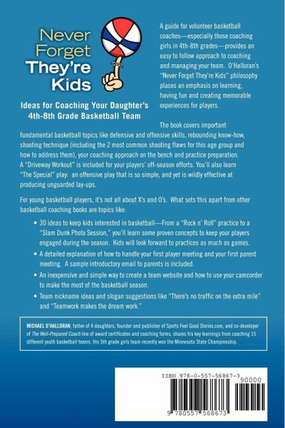 A guide for volunteer basketball coaches - especially those coaching girls in 4th-8th grades - provides an easy to follow approach to coaching and managing your team. O'Halloran's "Never Forget They're Kids" philosophy places an emphasis on learning, having fun and creating memorable experiences for players. MICHAEL O'HALLORAN, father of 4 daughters,founder and publisher of Sports Feel Good Stories.com, shares his key learnings from coaching 15 different youth basketball teams. His 5th grade girls team recently won the Minnesota State Championship.