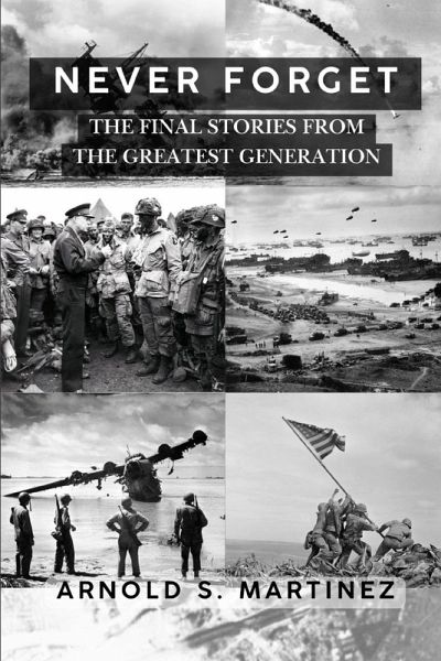 "With 'Never Forget,' Arnold Martinez gifts us a mosaic of memories epitomizing a generation that never asked for attention, but offers us so many valuable examples. Candid and compelling, equal parts relatable and raw, this collection of first-hand accounts will deepen your understanding of World War II, and expand your gratitude for the men and women who paid the price for our freedom." - Paul Loeffler - Host, Hometown Heroes Radio "Arnold Martinez has completed an amazing collection of what will be known as America's last testimonies of WWII. These veterans refused to die with their secrets, giving you amazing first hand accounts of combat." - Andrew Biggio - Best Selling Author - 'The Rifle' As of 2025, it is estimated that less than 0.5% of American World War Two Veterans are still with us; these are their FINAL stories. They lived during the roaring twenties, grew up during the Great Depression, and were called upon to defend our Nation during its greatest hour of Need. The United States was not the most powerful nation in the world back then and the future was uncertain. From being at Pearl Harbor when the war unexpectedly came to America that Sunday morning on December 7th, 1941, to women working at factories becoming an essential part of the war - to men parachuting into Normandy hours before the D-Day attacks on the beaches began. It has taken years to compile these stories, for you. These are the exact words as they came from these Heroes, they take comfort knowing that they are available for future Generations of Americans to read.