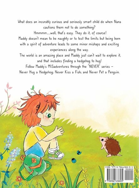 What does an incurably curious and seriously smart child do when Nana cautions them not to do something? Hmmmm......well, that's easy. They do it, of course! Maddy doesn't mean to be naughty or to test the limits but being born with a spirit of adventure leads to some minor mishaps and exciting experiences along the way. The world is an amazing place and Maddy just can't wait to explore it, and that includes finding a hedgehog to hug! Follow Maddy's MISadventures through the "NEVER" series - Never Hug a Hedgehog; Never Kiss a Fish; Never Pet a Penguin; and more. Written for children ages 4 - 7 and the people that love them.
