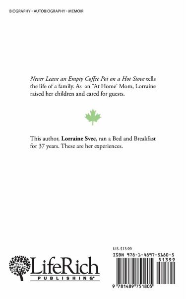 Never Leave an Empty Coffee Pot on a Hot Stove tells the life of a family. As an "At Home' Mom, Lorraine raised her children and cared for guests.