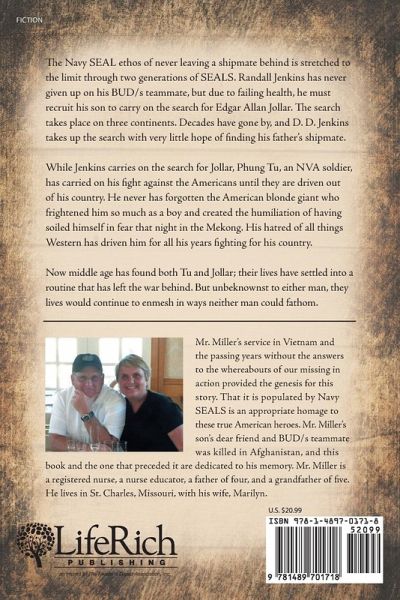The Navy SEAL ethos of never leaving a shipmate behind is stretched to the limit through two generations of SEALS. Randall Jenkins has never given up on his BUD/s teammate, but due to failing health, he must recruit his son to carry on the search for Edgar Allan Jollar. The search takes place on three continents. Decades have gone by, and D. D. Jenkins takes up the search with very little hope of finding his father's shipmate. While Jenkins carries on the search for Jollar, Phung Tu, an NVA soldier, has carried on his fight against the Americans until they are driven out of his country. He…mehr