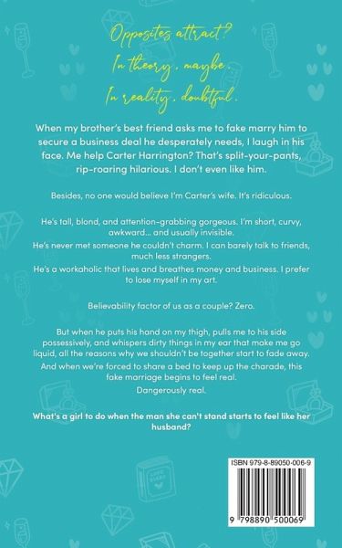 Opposites attract? In theory, maybe. In reality, doubtful. When my brother's best friend asks me to fake marry him to secure a business deal he desperately needs, I laugh in his face. Me help Carter Harrington? That's split-your-pants, rip-roaring hilarious. I don't even like him. Besides, no one would believe I'm Carter's wife. It's ridiculous. He's tall, blond, and attention-grabbing gorgeous. I'm short, curvy, awkward... and usually invisible. He's never met someone he couldn't charm. I can barely talk to friends, much less strangers. He's a workaholic that lives and breathes money and business. I prefer to lose myself in my art. Believability factor of us as a couple? Zero. But when he puts his hand on my thigh, pulls me to his side possessively, and whispers dirty things in my ear that make me go liquid, all the reasons why we shouldn't be together start to fade away. And when we're forced to share a bed to keep up the charade, this fake marriage begins to feel real. Dangerously real. What's a girl to do when the man she can't stand starts to feel like her husband?