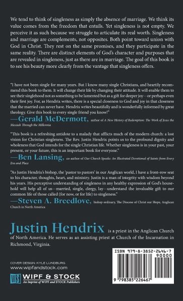We tend to think of singleness as simply the absence of marriage. We think its value comes from the freedom that entails. Yet singleness is not empty. We perceive it as such because we struggle to articulate its real worth. Singleness and marriage are complements, not opposites. Both point toward union with God in Christ. They rest on the same promises, and they participate in the same reality. There are distinct elements of God's character and purposes that are revealed in singleness, just as there are in marriage. The goal of this book is to see his beauty more clearly from the vantage that singleness offers.