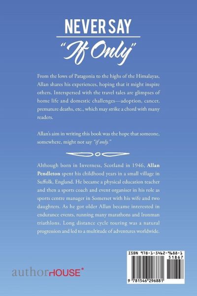 From the lows of Patagonia to the highs of the Himalayas, Allan shares his experiences, hoping that it might inspire others. Interspersed with the travel tales are glimpses of home life and domestic challengesadoption, cancer, premature deaths, etc., which may strike a chord with many readers. Allans aim in writing this book was the hope that someone, somewhere, might not say if only.