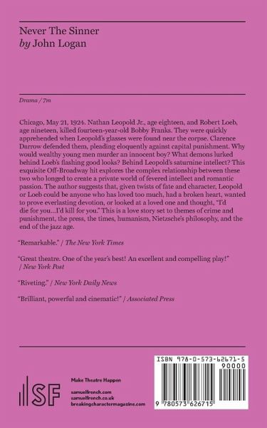 Chicago, May 21, 1924. Nathan Leopold Jr., age eighteen, and Robert Loeb, age nineteen, killed fourteen-year-old Bobby Franks. They were quickly apprehended when Leopold's glasses were found near the corpse. Clarence Darrow defended them, pleading eloquently against capital punishment. Why would wealthy young men murder an innocent boy? What demons lurked behind Loeb's flashing good looks? Behind Leopold's saturnine intellect? This exquisite Off-Broadway hit explores the complex r