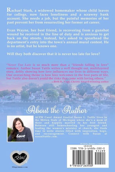 Once, her art brought her fame. This time will it bring her love? Widowed homemaker Rachael Stark isn't quite sure what comes after her only child leaves for college. To fill her suddenly quiet hours and scrawny bank account, she needs a job. But painful memories prevent her from resurrecting her former art career, and "motherhood" isn't much of a résumé. When her best friend needs help recovering from a gunshot wound that occurred in the line of duty, she is there. Finally, someone to take care of. Evan Wayne won't let his injury keep him from being a police officer. His dedication to protect the innocent stems from the guilt he carries over having failed his childhood friend. What he needs now is to recover and get back on the streets. Instead, he's handed a myriad of light-duty tasks by his captain--one of which involves heading up the department's entry into the town's annual mural contest. He's not an artist, but he definitely knows one. And he'll take any excuse to spend more time with her. When Rachael agrees to paint for Evan, she never expects to also be drawn into finding answers for the mother of a missing child. As the two friends work side by side on the mural and the case, their feelings move beyond friendship. But with Evan unwilling to leave his dangerous job, and Rachael unwilling to risk another loss of a loved one, their fears may paint over the promise of a beautiful future together.