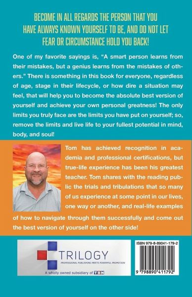 Become in all regards the person that you have always known yourself to be, and do not let fear or circumstance hold you back! One of my favorite sayings is, "A smart person learns from their mistakes, but a genius learns from the mistakes of others." There is something in this book for everyone, regardless of age, stage in their lifecycle, or how dire a situation may feel, that will help you to become the absolute best version of yourself and achieve your own personal greatness! The only limits you truly face are the limits you have put on yourself; so, remove the limits and live life to your fullest potential in mind, body, and soul!