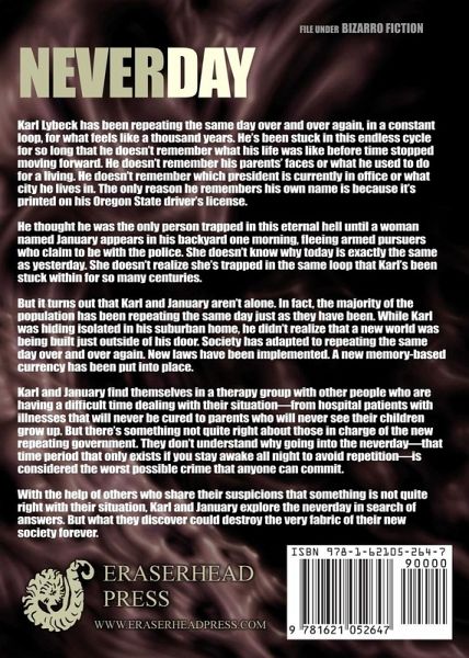 For almost 20 years, Carlton Mellick III has been writing some of the strangest and most compelling novels the bizarro fiction genre has to offer. Described as one of the top 40 science-fiction writers under the age of 40 by The Guardian and "one of the most original novelists working today" by extreme horror legend Edward Lee. In his 57th book, Neverday, Mellick has created a dystopian horror tribute to time loop stories in the tradition of Groundhog Day, Edge of Tomorrow and Happy Death Day. Karl Lybeck has been repeating the same day over and over again, in a constant loop, for what feels like a thousand years. He’s been stuck in this endless cycle for so long that he doesn’t remember what his life was like before time stopped moving forward. He doesn’t remember his parents’ faces or what he used to do for a living. He doesn’t remember which president is currently in office or what city he lives in. The only reason he remembers his own name is because it’s printed on his Oregon State driver’s license. He thought he was the only person trapped in this eternal hell until a woman named January appears in his backyard one morning, fleeing armed pursuers who claim to be with the police. She doesn’t know why today is exactly the same as yesterday. She doesn’t realize she’s trapped in the same loop that Karl’s been stuck within for so many centuries. But it turns out that Karl and January aren’t alone. In fact, the majority of the population has been repeating the same day just as they have been. While Karl was hiding isolated in his suburban home, he didn’t realize that a new world was being built just outside of his door. Society has adapted to repeating the same day over and over again. New laws have been implemented. A new memory-based currency has been put into place. Karl and January find themselves in a therapy group with other people who are having a difficult time dealing with their situation—from hospital patients with illnesses that will never be cured to parents who will never see their children grow up. But there’s something not quite right about those in charge of the new repeating government. They don’t understand why going into the neverday—that time period that only exists if you stay awake all night to avoid repetition—is considered the worst possible crime that anyone can commit. With the help of others who share their suspicions that something is not quite right with their situation, Karl and January explore the neverday in search of answers. But what they discover could destroy the very fabric of their new society forever.
