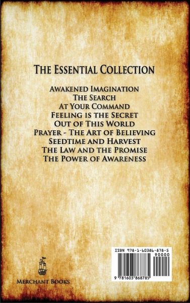 An Unabridged Edition to include: AWAKENED IMAGINATION - Who Is Your Imagination? - Sealed Instructions - Highways of the Inner World - The Pruning Shears of Revision - The Coin of Heaven - It Is Within - Creation Is Finished - The Apple of God's Eye - THE SEARCH - AT YOUR COMMAND - FEELING IS THE SECRET - Foreword - Law and Its Operation - Sleep - Prayer - Spirit-Feeling - OUT OF THIS WORLD - Thinking Fourth - Dimensionally - Assumptions Become Facts - Power of Imagination - No One to Change but Self - PRAYER, THE ART OF BELIEVING - Law of Reversibility - Dual - Nature of Consciousness - Imagination and Faith - Controlled - Reverie - Law of Thought Transmission - Good Tidings - The Greatest Prayer - SEEDTIME & HARVEST - The End of a Golden String - The Four Mighty Ones - The Gift of Faith - The Scale of Being - The Game of Life - Time, Times, and an Half - Be Ye Wise as Serpents - The Water and the Blood - A Mystical View - THE LAW & THE PROMISE - Foreword - The Law - Imagining Creates Reality - Dwell Therein - Turn the Wheel Backward - There Is No Fiction - Subtle Threads - Visionary Fancy - Moods - Through the Looking Glass - Enter Into - Things Which Do Not Appear - The Potter - Attitudes - All Trivia - The Creative Moment - The Promise - Four Mystical Experiences - THE POWER OF AWARENESS - I Am - Consciousness - Power of Assumption - Desire - The Truth That Sets You Free - Attention - Attitude - Renunciation - Preparing Your Place - Creation - Interference - Subjective Control - Acceptance - The Effortless Way - The Crown of the Mysteries - Personal Impotence - All Things Are Possible - Be Ye Doers - Essentials - Righteousness - Free Will - Persistence - Case Histories - Failure - Faith - Destiny - Reverence