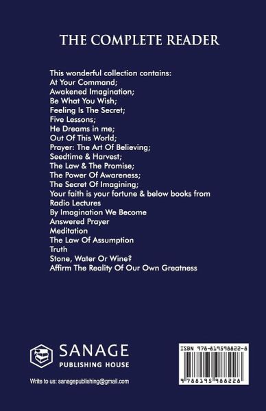 Bringing Together The Best of "Neville Goddard's" works. This wonderful collection contains: At Your Command; Awakened Imagination; Be What You Wish; Feeling Is The Secret; Five Lessons; He Dreams in me; Out Of This World; Prayer: The Art Of Believing; Seedtime & Harvest; The Law & The Promise; The Power Of Awareness; The Secret Of Imagining; Your faith is your fortune; By Imagination We Become; Answered Prayer; Meditation; The Law of Assumption; Truth; Stone, Water or Wine? And Affirm the Reality of Our Own Greatness