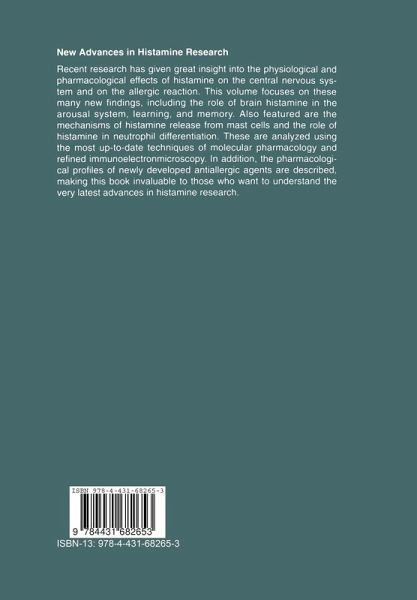 Recent research has given great insight into the physiological and pharmaceutical effects of histamine on the central nervous system and especially on the brain. This volume focuses on these many new findings, including the role of brain histamine in the arousal system, learning, and memory. Also featured are the mechanisms of histamine release in bone marrow and mast cells and the role of histamine in neutrophil differentiation. These are analyzed using the most up-to-date techniques of molecular pharmacology and refined immunoelectroscopy. In addition, the pharmacological profiles of newly developed H1 antagonists are described, making this book invaluable to those who want to understand the very latest advances in histamine research.