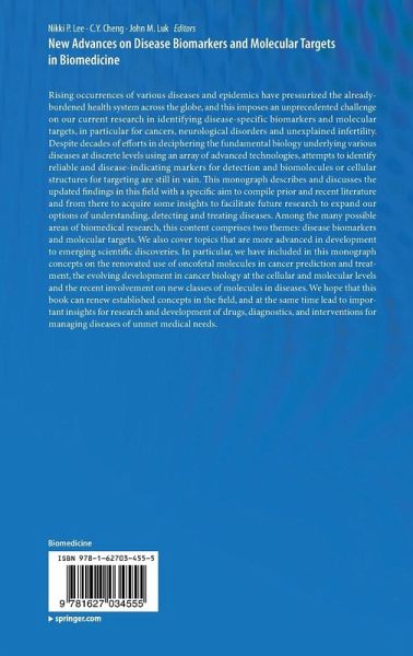Rising occurrences of various diseases and epidemics have pressurized the already-burdened health system across the globe, and this imposes an unprecedented challenge on our current research in identifying disease-specific biomarkers and molecular targets, in particular for cancers, neurological disorders and unexplained infertility. Despite decades of efforts in deciphering the fundamental biology underlying various diseases at discrete levels using an array of advanced technologies, attempts to identify reliable and disease-indicating markers for detection and biomolecules or cellular structures for targeting are still in vain. This monograph describes and discusses the updated findings in this field with a specific aim to compile prior and recent literature and from there to acquire some insights to facilitate future research to expand options of understanding, detecting and treating diseases. Among the many possible areas of biomedical research, this content comprises two themes: disease biomarkers and molecular targets. The book also covers topics that are more advanced in development to emerging scientific discoveries. In particular, this monograph includes concepts on the renovated use of oncofetal molecules in cancer prediction and treatment, the evolving development in cancer biology at the cellular and molecular levels and the recent involvement on new classes of molecules in diseases. This book renews established concepts in the field, and at the same time leads to important insights for research and development of drugs, diagnostics, and interventions for managing diseases of unmet medical needs.