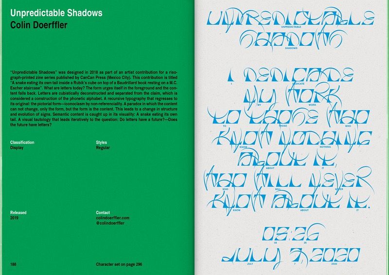 'New Aesthetic' approaches type design as an opportunity to create art: looking at type design with a benevolence to experiments and processes, and finding potential in the unusual, that might point us into a new future of practicing visual communication." The editors