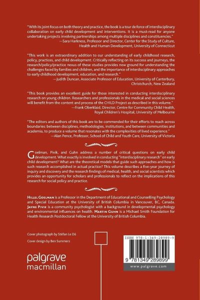 "This book provides an excellent guide for those interested in conducting interdisciplinary research on young children. Researchers and professionals in the medical and social sciences will benefit from the content and process of the CHILD Project as described in this volume." - Frank Oberklaid, Director, Center for Community Child Health, Royal Children's Hospital, University of Melbourne