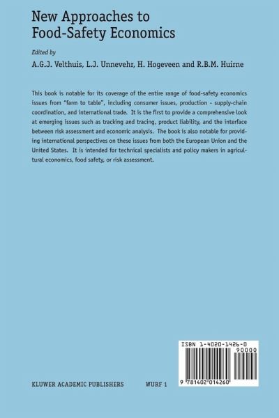 It is the first to provide a comprehensive look at emerging issues such as tracking and tracing, product liability, and the interface between risk assessment and economic analysis. The book is also notable for providing international perspectives on these issues from both the European Union and the United States. It is intended for technical specialists and policy makers in agricultural economics, food safety, or risk assessment.
