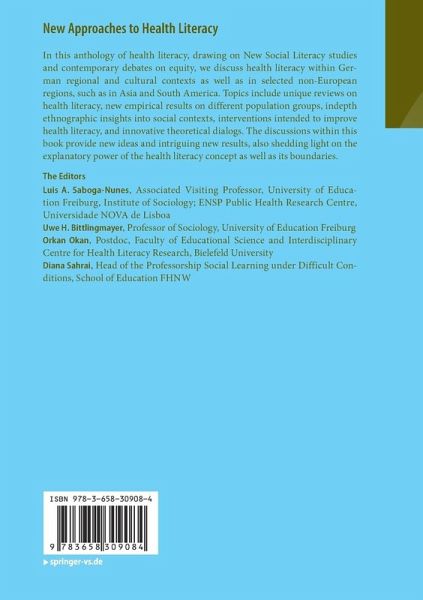 In this anthology of health literacy, drawing on New Social Literacy studies and contemporary debates on equity, we discuss health literacy within German regional and cultural contexts as well as in selected non-European regions, such as in Asia and South America. Topics include unique reviews on health literacy, new empirical results on different population groups, in-depth ethnographic insights into social contexts, interventions intended to improve health literacy, and innovative theoretical dialogs. The discussions within this book provide new ideas and intriguing new results, also shedding light on the explanatory power of the health literacy concept as well as its boundaries.