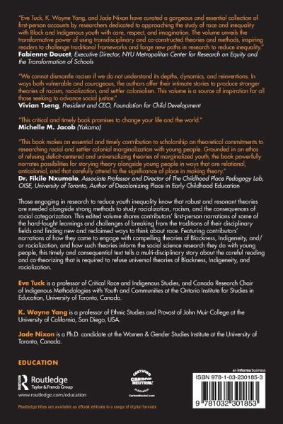 Those engaging in research to reduce youth inequality know that robust and resonant theories are needed alongside strong methods to study racialization, racism, and the consequences of racial categorization. This edited volume shares contributors' first-person narrations of some of the hard-fought learnings and challenges of breaking from the traditions of their disciplinary fields and finding new and reclaimed ways to think about race. Featuring contributors' narrations of how they came to engage with compelling theories of Blackness, Indigeneity, and/or racialization, and how such theories inform the social science research they do with young people, this timely and consequential text tells a multi-disciplinary story about the careful reading and co-theorizing that is required to refuse universal theories of Blackness, Indigeneity, and racialization.