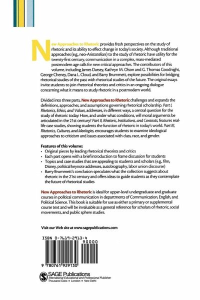 Demonstrating and showcasing theory into action, this book provides fresh perspectives on the study of rhetoric and rhetoric's ability to affect change in today's society. This collection of all original pieces challenge and expand the definitions, approaches, and assumptions governing rhetorical scholarship, inviting students to join rhetorical theorists and critics in an ongoing dialogue concerning what it means to study communication in a postmodern world.