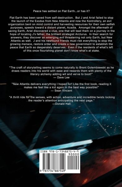 Peace has settled on Flat Earth...or has it? Flat Earth has been saved from self-destruction. But J and Ariel failed to stop the launch of the Exodus from New Atlantis and now the Kontrollery, an evil organization bent on mind control and harvesting resources for their own selfish purposes, speeds toward a distant planet, Acadia. Amongst the aftermath of saving Earth, Ariel discovered a clue, one that will lead them on a journey in the hope of locating J's father, the brilliant strategist Arcturus. In their search for answers, they discover an emerging evil threatening not only Earth, but New Atlantis as well. J and his newfound friends must risk everything to stop the growing menace, restore order and create a new government to establish the peace that Earth so desperately deserves. Even if the residents of what's left of this once flourishing planet don't know what's at stake.