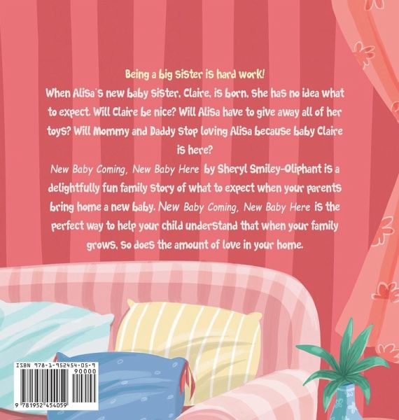 Being a big sister is hard work! When Alisa's new baby sister, Claire, is born, she has no idea what to expect. Will Claire be nice? Will Alisa have to give away all of her toys? Will Mommy and Daddy stop loving Alisa because baby Claire is here? New Baby Coming, New Baby Here by Sheryl Smiley-Oliphant is a delightfully fun family story of what to expect when your parents bring home a new baby. New Baby Coming, New Baby Here is the perfect way to help your child understand that when your family grows, so does the amount of love in your home. Summary: When Alisa's parents bring home her baby sister, Claire, from the hospital early, Alisa has no idea what to expect. At first, she is enamored by her adorable new sister, but then reality sets in, and things get a lot harder than she anticipated. Alisa must learn to share her toys, her attention, and her parents' love. However, as Claire grows, Alisa learns that all of the hard work, life change, and sacrifice are worth the joys of being a big sister.