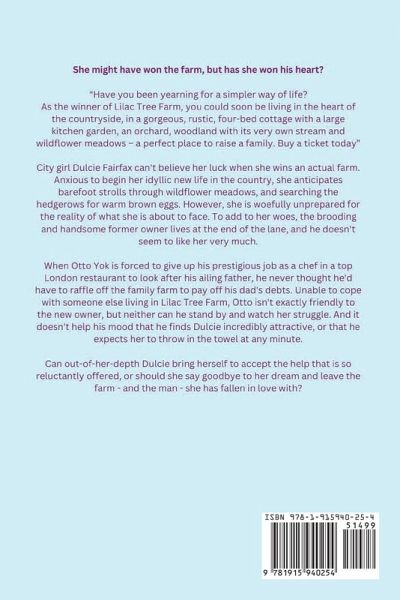 LARGE PRINT She might have won the farm, but has she won his heart? "Have you been yearning for a simpler way of life? As the winner of Lilac Tree Farm, you could soon be living in the heart of the countryside, in a gorgeous, rustic, four-bed cottage with a large kitchen garden, an orchard, woodland with its very own stream and wildflower meadows - a perfect place to raise a family. Buy a ticket today" City girl Dulcie Fairfax can't believe her luck when she wins an actual farm. Anxious to begin her idyllic new life in the country, she anticipates barefoot strolls through wildflower meadows, and searching the hedgerows for warm brown eggs. However, she is woefully unprepared for the reality of what she is about to face. To add to her woes, the brooding and handsome former owner lives at the end of the lane, and he doesn't seem to like her very much. When Otto Yok is forced to give up his prestigious job as a chef in a top London restaurant to look after his ailing father, he never thought he'd have to raffle off the family farm to pay off his dad's debts. Unable to cope with someone else living in Lilac Tree Farm, Otto isn't exactly friendly to the new owner, but neither can he stand by and watch her struggle. And it doesn't help his mood that he finds Dulcie incredibly attractive, or that he expects her to throw in the towel at any minute. Can out-of-her-depth Dulcie bring herself to accept the help that is so reluctantly offered, or should she say goodbye to her dream and leave the farm - and the man - she has fallen in love with?