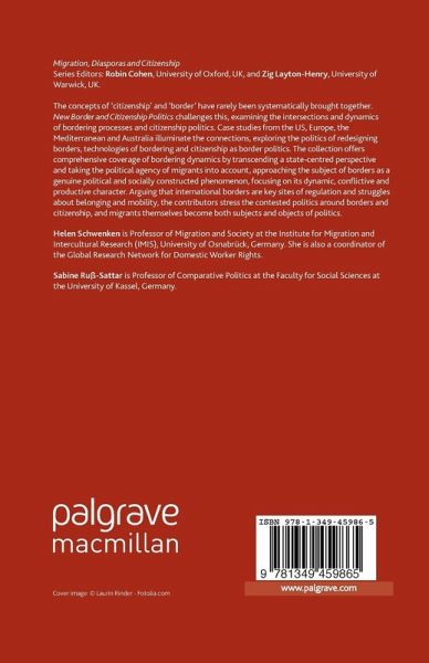 New Border and Citizenship Politics: An Introduction; Helen Schwenken and Sabine Russ-Sattar PART I 1. Part I Introduction: The Politics of Redefining Borders; Helen Schwenken and Sabine Russ-Sattar 2. Constructing Voluntarism: Technologies of 'Intent Management' in Australian Border Controls; Leanne Weber and Sharon Pickering 3. Malta and the Rescue of Unwanted Migrants at Sea: Negotiating the Humanitarian Law of the Sea and the Contested Redesigning of Borders; Silja Klepp 4. Negotiating Mobility, Debating Borders: Migration Diplomacy in Turkey-EU Relations; Ahmet ?cduygu and Ay?en Ustubici PART II 5. Part II Introduction: The Technologies of Bordering; Helen Schwenken and Sabine Russ-Sattar 6. The Momentum of Contestation: Airports as Borderlands on the Inside; Detlef Sack 7. The Interiorisation and Localisation of Border Control: A US Case; Robyn Magalit Rodriguez 8. Outsiders/Insiders: How Local Immigrant Organisations Contest the Exclusion of Undocumented Immigrants in the US; Mara Sidney 9. Conditionalities as Internal Borders: The Case of 'Security of Residence' for Third-Country Nationals in Austria; ?lker Atac PART III 10. Part III Introduction: Politics of Citizenship as Border Politics; Sabine Russ-Sattar and Helen Schwenken 11. Border Control Politics as Technologies of Citizenship in Europe and North America; Kim Rygiel 12. Troubling Borders: Sans-Papiers and France; Catherine Raissiguier 13. From Sangatte to 'the Jungle': Europe's Contested Borderlands; Helen Schwenken 14. Labour Migration, Postcolonial Nationalism and Class Politics Beyond Borders: The Case of the Turkish Party MHP in Germany; Jorg Nowak 15. Emigration Policies and Citizenship Rhetoric: Morocco and its Emigrants in Europe; Esther Mikuszies