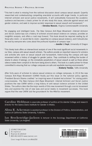 This is the first book to examine the new campus anti-rape movement that emerged in 2014. The authors examine the role of new laws and social media in facilitating movement successes.