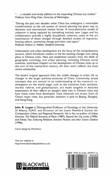"During the past two decades urban China has undergone aremarkable transformation as the old system of central planning hasgiven way to domestic and international market forces. Aonce-distinctive model of urbanism is being replaced by somethingentirely new. Logan and his collaborators provide a highlydisciplined, coherent, state of the art examination of thesechanges through detailed studies of migration, housing reform,community change and other vital topics." Andrew Walder,Stanford University