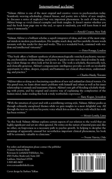With the help of illuminating clinical vignettes and a solid anchor in the contemporary diversity of psychoanalytic theorizing, Akhtar's book offers clinicians a rare glimpse into both the dark corners of psychopathology and the fresh arenas of healthy mental functioning. As a result, the readers find their capacity for empathy deepened and their therapeutic skills sharpened. A Jason Aronson Book
