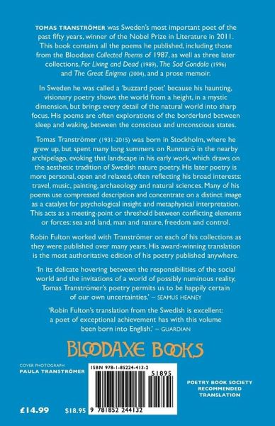 Tomas Transtrà mer (1931-2015) was Swedenâ s most important poet of the past fifty years. This book contains all the poems he published. Robin Fulton's translation is the most authoritative and comprehensive edition of his poetry published anywhere.