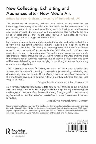 The collections of museums, galleries and online art organisations are increasingly broadening to include more new media art. Because new media is used as a means of documenting, archiving and distributing art, and because new media art might be interactive with its audiences, this highlights the new kinds of relationships that might occur between audiences as viewers, participants, selectors, taggers or taxonomisers. New media art presents many challenges to the curator and collector, but there is very little published analytical material available to help meet those challenges. This book fills that gap. Drawing from the editor's extensive research and the authors' expertise in the field, the book provides clear navigation through a disparate arena. The authors offer examples from a wide geographical reach, including the UK, North America and Asia and integrate the consideration of audience response into all aspects of their work. The book will be essential reading for those studying or practicing in new media, curating or museums and galleries.