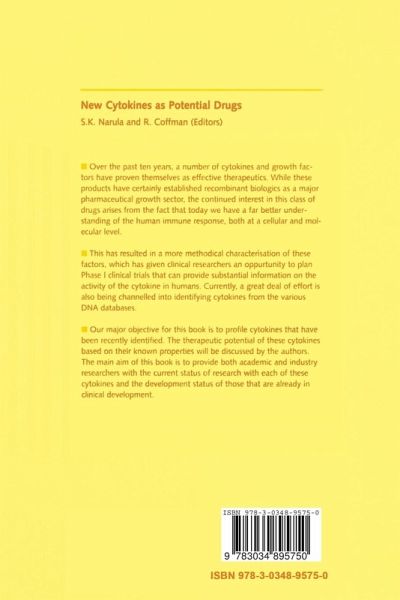 Over the past ten years, a number of cytokines and growth factors haveproven to be as effective therapeutics. While these products havecertainly established recombinant biologics as a major pharmaceuticalgrowth sector, the continued interest in this class of drugs arises fromthe fact that today we have a far better understanding of the humanimmune response, both at a cellular and molecular level.This has resulted in a more methodical characterisation of these factorswhich has given clinical researchers an opportunity to plan Phase 1clinical trials that can provide substantial information on the activityof the cytokine in humans. Currently, a great deal of effort is alsobeing channelled into identifying cytokines from the various DNAdatabases.Our major objective for this book is to profile cytokines that have beenrecently identified. The therapeutic potential of these cytokines basedon their known properties will be discussed by the authors. The main aimof this book is to provide..